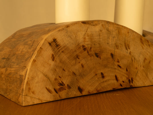 Cada peça é meticulosamente trabalhada à mão, cada trabalho é singular e irrepetível, nenhum “resto” de madeira que encontramos é igual e não temos a pretensão, quando o modelamos, de fazê-lo parecer com outro já realizado. Cada uma das nossas criações conta a sua própria história, onde foi apanhada, como estava, como a projectámos e como lhe demos forma.