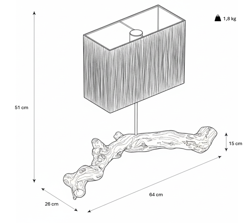 O Sarmento nasce da madeira de vinha velha, moldada pelo tempo, pelo sol e pela poda paciente de gerações. Trabalhado na horizontal, este candeeiro respeita a forma natural do tronco e transforma-a numa linha de luz discreta, perfeita para acolher quem chega. Os seus "pés" assentam com extrema delicadeza.